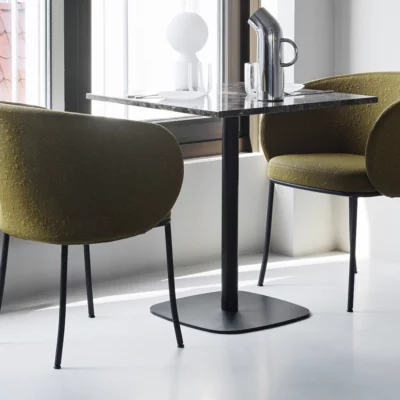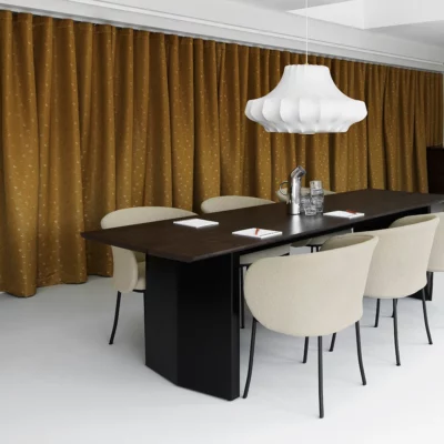 Ce fauteuil est tapissé en « Myr », un nouveau textile Kvadrat fabriqué à partir de 100 % de polyester recyclé, offrant à la fois confort et durabilité. Le dossier ne contient pas de mousse pour une assise légère et élégante. La structure en acier thermolaqué assure robustesse et stabilité. L’assise combine bois certifié FSC et bois provenant d’autres sources contrôlées, mousse et housse en textile tricoté détachable, facilitant l’entretien. Disponible en 3 coloris de tissu, ce fauteuil s’adapte parfaitement à tous les espaces intérieurs, alliant design contemporain et respect de l’environnement.