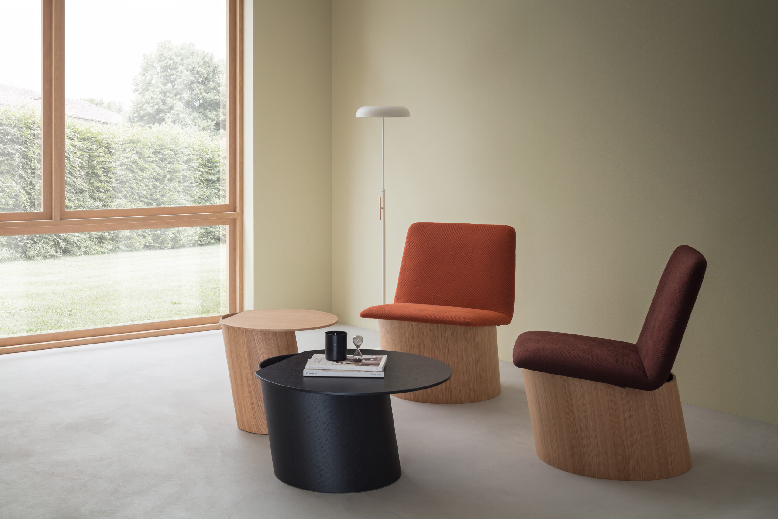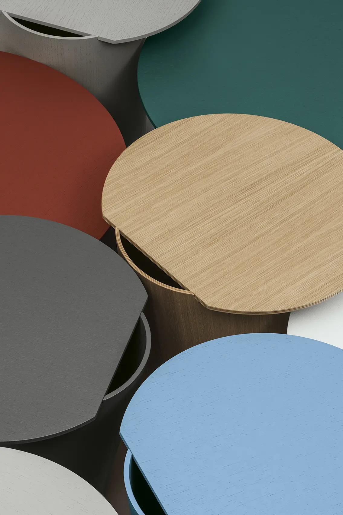 Issu de la rencontre entre un cylindre incliné et un cercle, ce piètement au design contemporain allie dynamisme, stabilité et savoir-faire artisanal. Réalisé en contreplaqué de chêne cintré avec une finition à pores ouverts, il offre une esthétique naturelle et élégante. Disponible en diamètre 30 ou 50 cm, sa conception sans joints apparents garantit une finition soignée et facilite le déplacement du mobilier. Idéal pour tables design et mobilier contemporain.