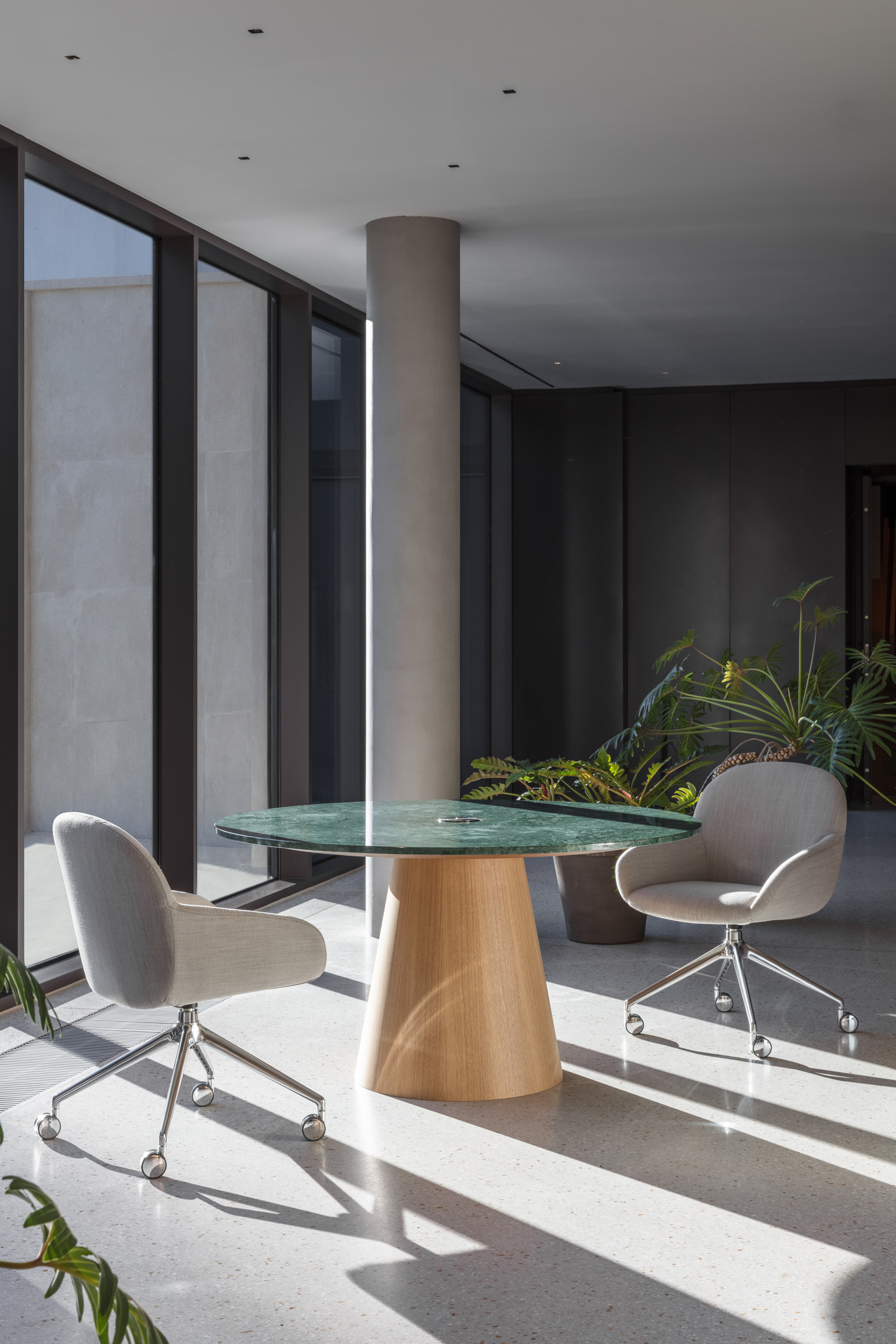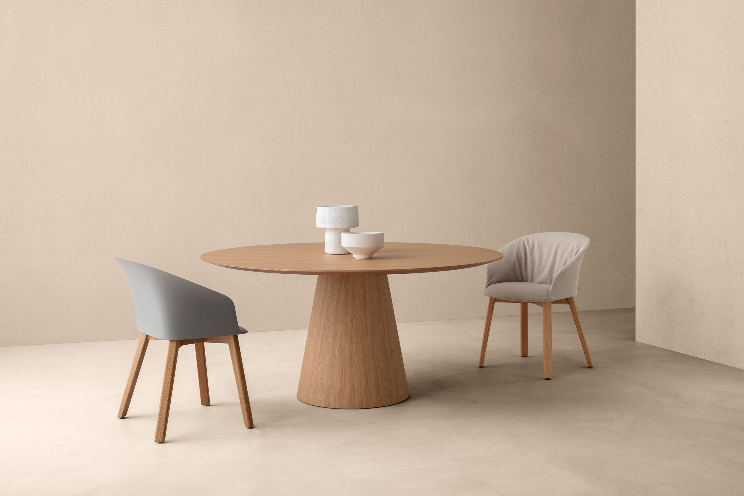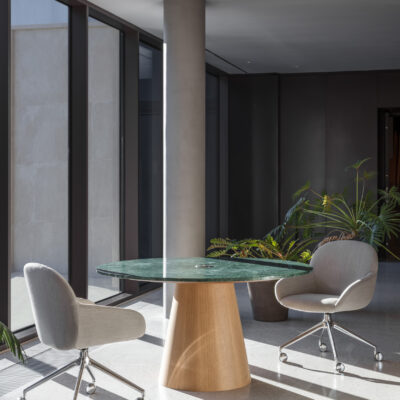 La table Inoko est une table design ronde, son noyau en bois massif et sa structure solide soutiennent parfaitement le plateau, disponible en stratifié Fenix, contreplaqué ou céramique effet marbre, pour un rendu contemporain et raffiné. Cette table peut également être équipée de connectiques intégrées, idéale pour les bureaux , salles de réunion ou espaces résidentiels.